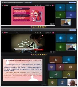 Школярі спілкувалися на такі теми, як «Загрози віртуального світу», «Етика спілкування в соціальних мережах», «Коли варто собі сказати «СТОП»!», «Як реагувати на приниження й погрози в кіберпросторі?», «Відповідаймо за свої слова та вчинки», «Кібербулінг: невидима загроза».