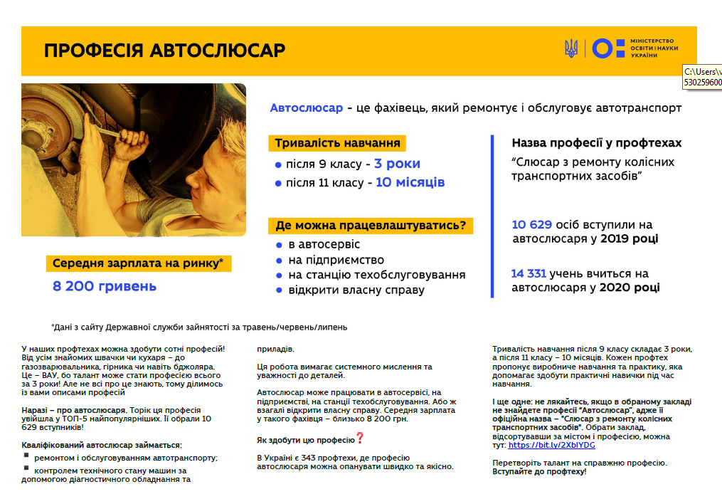 Перелік інформаційних матеріалів про робітничі професії, які можна здобути у закладах професійної (професійно-технічної) освіти